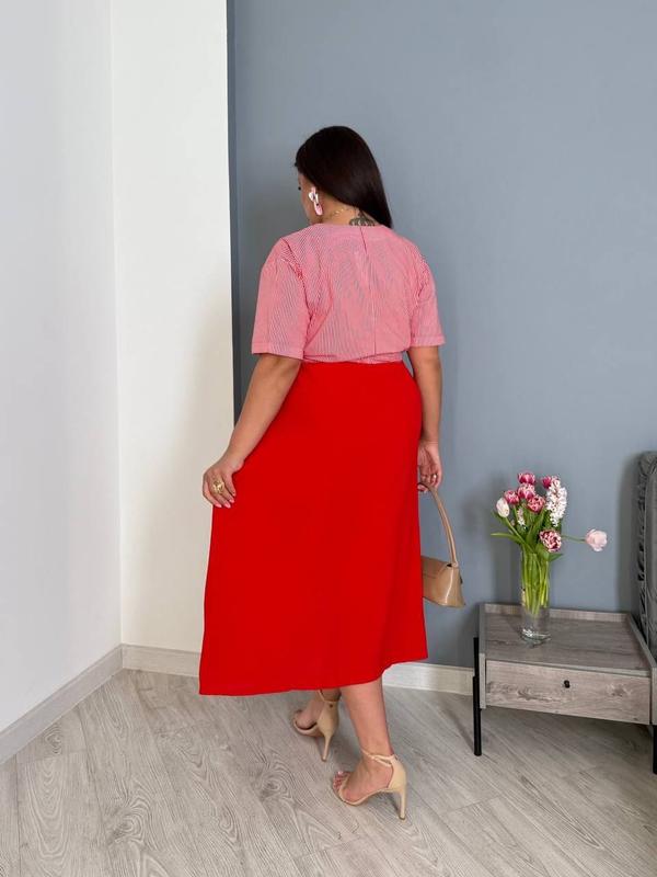⬆️НОВИНКА Платье Арт 2151❤️111б Ткань креп жатка американский, коттон полоска Цвет черный, красный, синий Размер 48-50,52-54,56-58 Платье с коротким рукавом, талия на кулиске, с карманами.