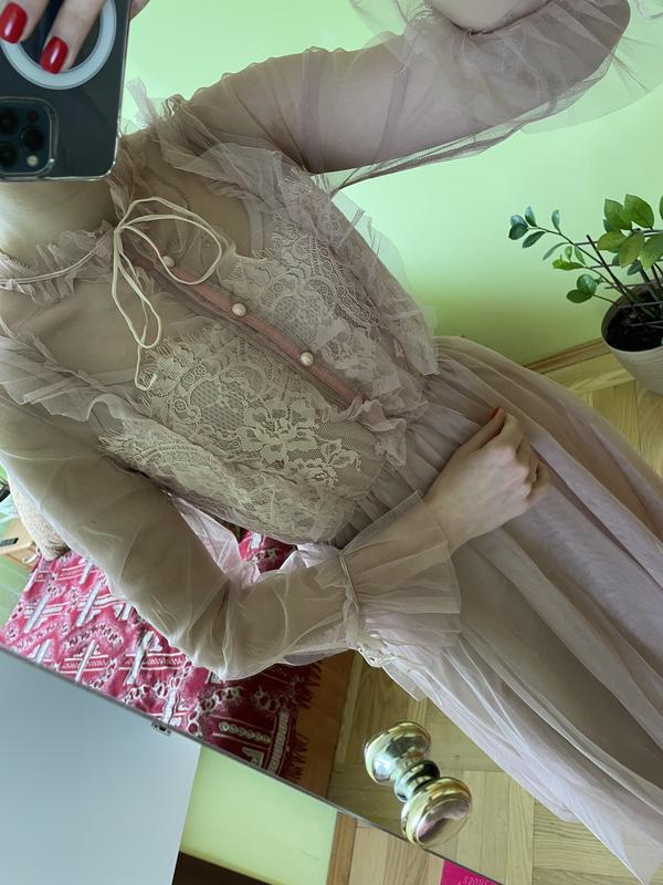 Нарядное платье, стильное красиво выполненное, состоит из двух частей под низом идет длинная майка и сверху самое платье из сеточки. Стан идеальный одевала только один раз. Размер S и М хорошо тянется в талии.