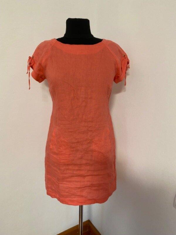 Классное льняное платье розово - кораллового цвета, размер 42 указан, демонстрировано на манекене 52 размера. Один раз приключился. Длина - 87см, рукав от горловины - 20см, пог - 51,5см, пот - 46см, поб - 56см