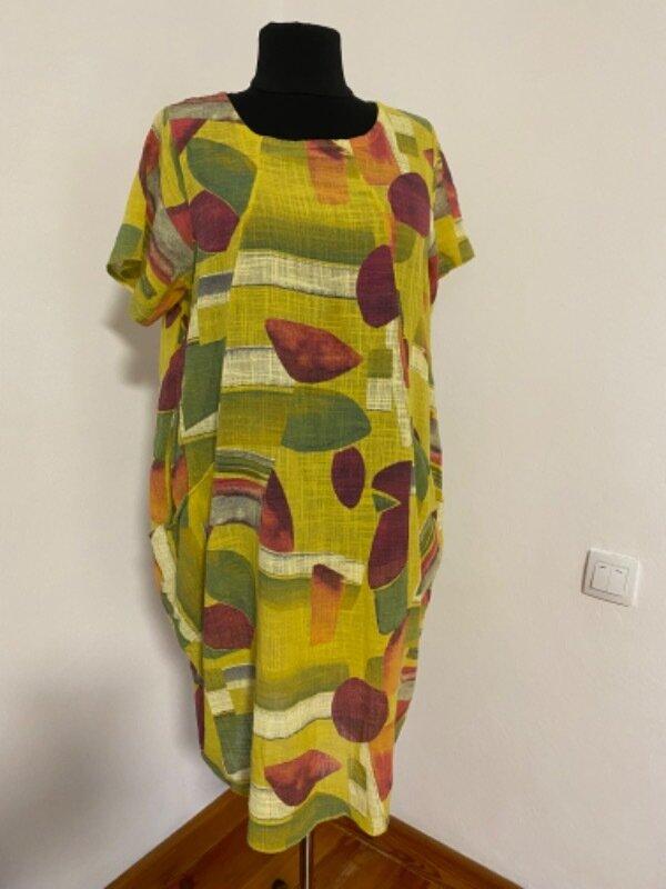 Красивое летнее платье демонстрировано на манекене 52 размера. Длина - 104см, плечи - 40см, рукав от плеча - 22см, пог - 60см, пот - 71см, поб - 77см.