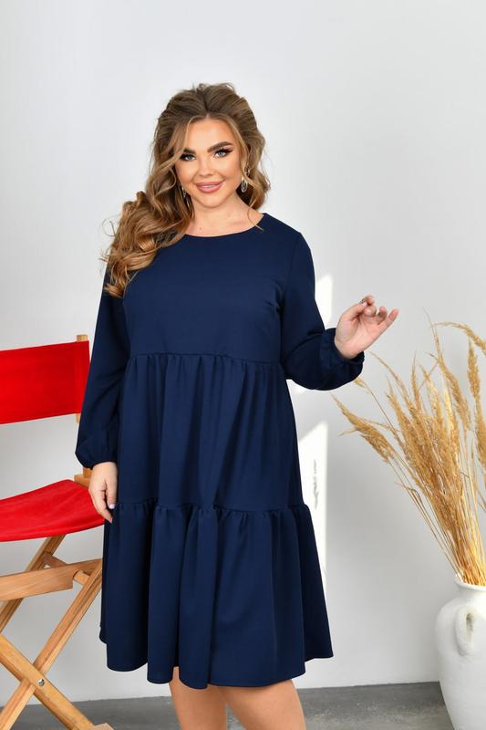 Сукня НОВИНКА💥💥💥 В НАЯВНОСТІ✅✅✅ Код 3690 Тканина: креп-стретч (розтяжність середня). Розміри: 48-50, 52-54, 56-58, 60-62, 64-66. Довжина сукні: 105, 107, 109, 112, 114 см. Довжина рукава: 63, 63, 63, 63, 63 см. Обхват рукава: 38, 40, 42, 44, 46 см. Заміри готового виробу: 48-50 ОГ 104 ОТ 102 ОС 162 52-54 ОГ 112 ОТ 110 ОС 170 56-58 ОГ 120 ОТ 118 ОС 180 60-62 ОГ 128 ОТ 126 ОС 190 64-66 ОГ 136 ОТ 134 ОС 200 Стильна повсякденна сукня із трикотажу креп-стретч ( розтяжність середня). Виріз горловини круглий, рукав довгий, на резинці. Спідниця сукні виконана із двох ярусів. Застібок, кишень немає.