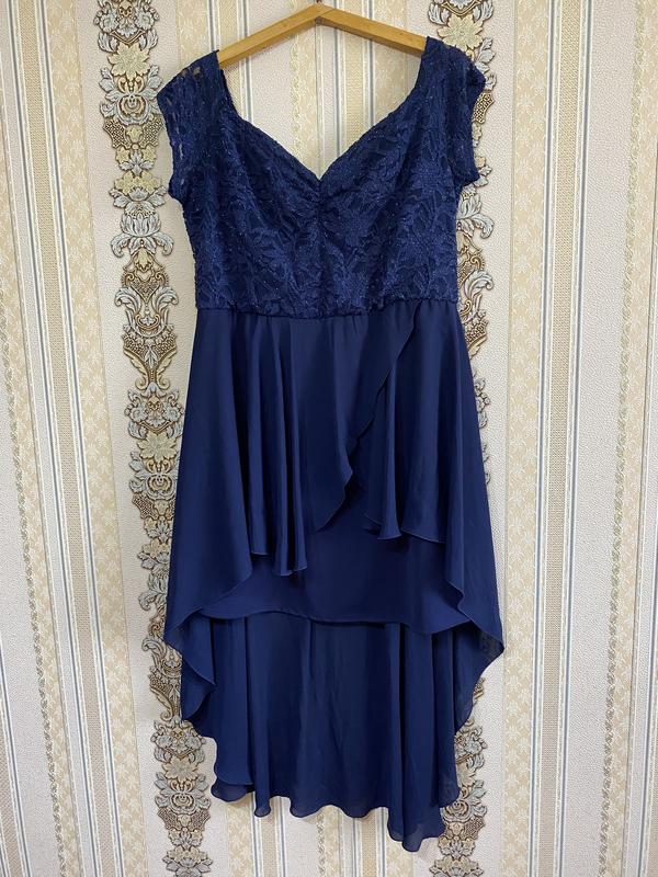 Стильное нарядное вечернее платье, темно-синее платье миди батал
