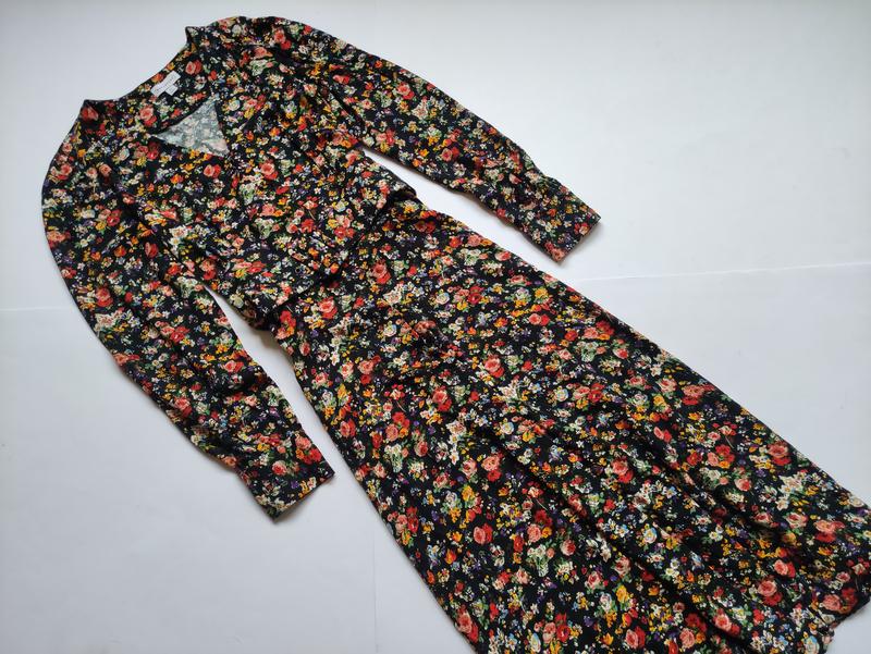 Платье миди с цветочным принтом в винтажном стиле Размер указанный 12 Іде на М ПОГ - 45, ПОТ - 36, ПОБ - свободно, 56. Длина 118. 100% вискоза Новая, без бирки Сверху книзу идут пуговицы, на талии широкий пояс Удобная, актуальная модель Это платье сделает ваш образ волшебным и неповторимым