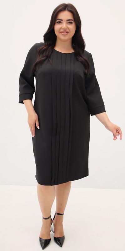 Платье прямого свободного кроя ▫️ Размеры: 52 54 56 58 ▫️ Округлый вырез горловины добавляет классической изысканности. ▫️Вертикальные складки спереди и сзади визуально удлиняют силуэт, делая его более стройным. ▫️Рукава 3/4 – универсальная длина для любого времени года. ▫️Длина меди создает гармоничный образ, подходит как для деловых встреч, так и для особых событий. ▫️Материал: Плательная костюмка “Италия” ▫️Рост модели 175 см ▫️Длина рукава- 45см ▫️Длина 97-100/±2