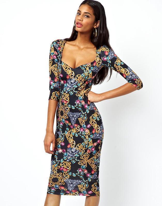 Распродажа платье asos миди с вырезом сердечком и принтом в виде драгоценностей