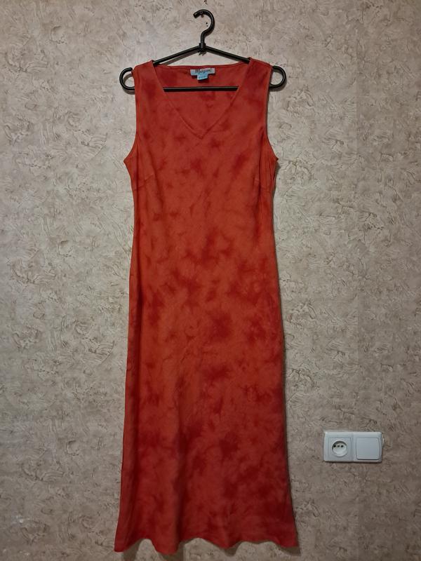 Розмір по бірці 12( М- невелика Л) ЗАМІРИ: Напівіоб'єм грудей-52 Напівіоб'єм талії-45 Напівіоб'єм стегон-56 Довжина 121 Склад: 100% льон Стан ідеальний- без дефектів