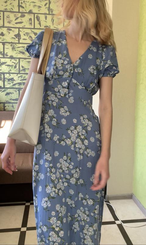 Размер указан M. Замеры вещи есть на фото. Также для удобства внизу есть Мои настройки для сравнения. Нежная, приятная ткань 100% вискоза. Есть еще одно цветочное платье: темное, с разрезом на ноге, тоже недорого, заходите в профиль. К сожалению, есть небольшой дефект, пятно внизу сзади, есть 2х на фото. В жизни почти сливается с цветом платья, сама далеко не сразу заметили это пятно. Цвет на фото где-то некорректно. На самом деле, это пастельный светло-голубой. Надежно на: рост 177см; плечи 43см; в груди 85см; талия 67см; живот 84см; бедра 89см;