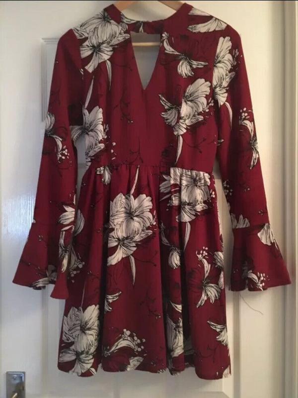Сукня Sisters point Бордового кольору з квітковим принтом І рифленими рукавами . З замочком на спині. Стан новий з бірками.