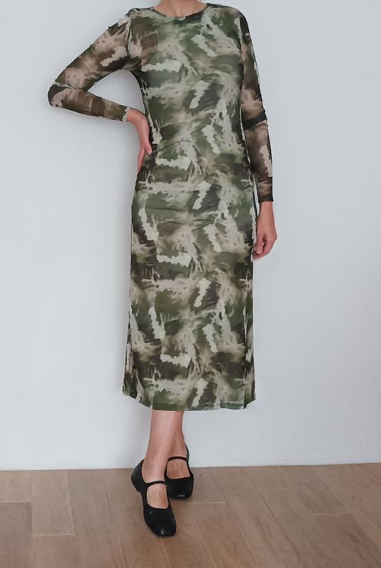 Платье сеточка с подкладкой PRIMARK Размер:XS; UK 6-8; EUR 34-36, красиво тянется, будет также M/L. Состояние новой без бирки. Без дефектов. Замеры: длина 125, рукав 61, пог 42-53, пот 35-43, поб 44-55. Рост модели 1.70. Слад: 95 полиэстер/ 5 эластан.