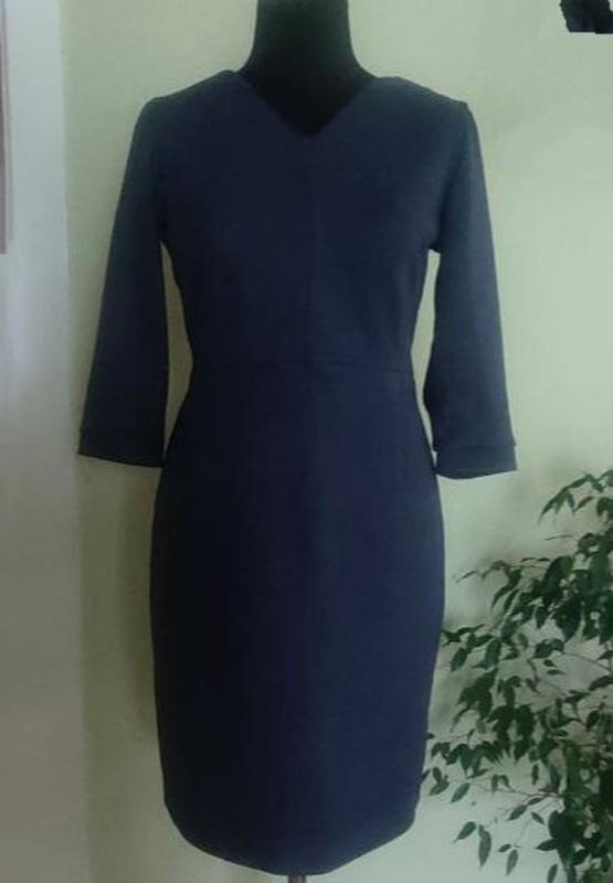 Платье синего цвета. Очень удобно в нем на работу в офис, или где-либо, так как ткань растягивается. Ткань трикотаж (лицевая часть напоминает велюру, только это не велюр) 53% вискоза 35% полиэстер 10% бавовна 2% еластан