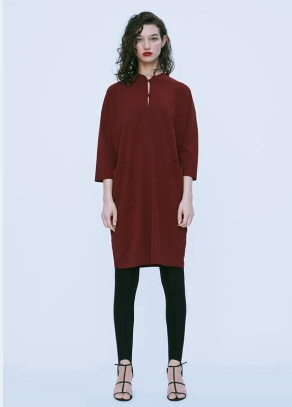Бордовое платье туника, платье миди, с длинным рукавом, силуэт кокон кимоно от zara