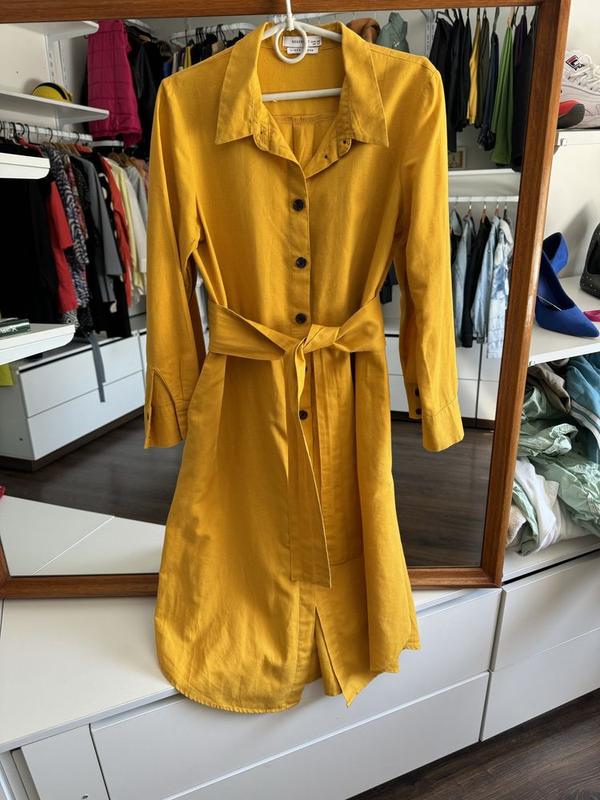 Платье Reserved, р. М. Стан отличный. Состав ткани: 55% лен, 45% коттон. Замеры: длина 106 см, ширина под руками 54 см, ширина по талии 50 см, по бедрам 55 см.
