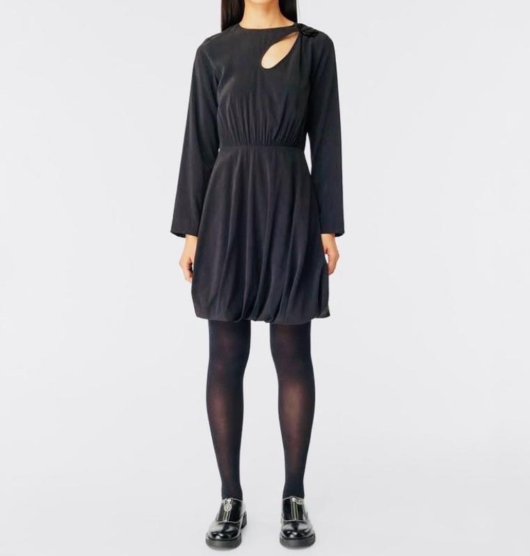 Вишукана сукня чорна,драпіровка та виріз. Чорна сукня s. Стан нової. Довжина 91см, ширина грудей 44см,рукава 60см ,плечі 37см, талія 68см, задня молнія 51см,