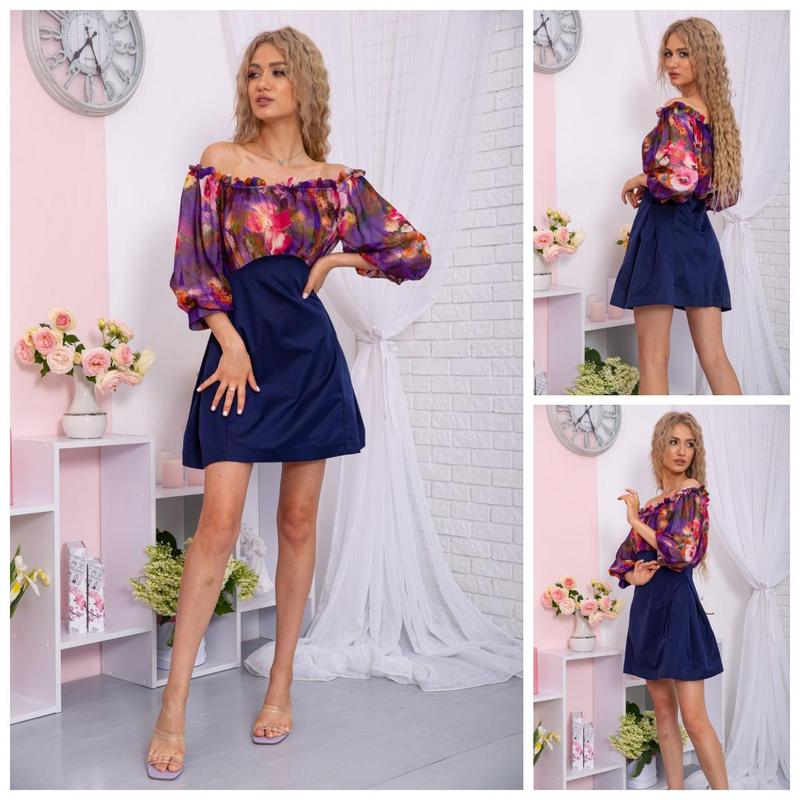 Мини-платье с цветочным принтом, темно-синего цвета, 167r306-10.