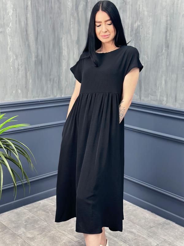 Летнее платье миди свободного кроя Арт.: 9339 ✔️всегда актуальный фасон - свободный крой и длина миди. ✔️легкая фактурная ткань дарит ощущение комфорта ✔️шесть оттенков на выбор Норма (42-44, 46-48) Батал (50-52) 🌈Цвета: капучино, черный, фрезовый, голубой, лавандовый, хаки 🧷Размер: 42-44, 46-48, 50-52 🪡Материал: креп-жатка (100% полиэстер) 📐Замеры: Длина по спинке: 112-114 см Длина рукава (от горловины): 21-22 см