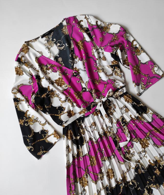 Размер: 14 (L) Замеры: ПОГ-55см, ПОТ-44см, длина рукава-45см, длина платья-117см Состав: 96% полиэстер, 4% эластан Состояние: новое, без бумажной бирки (есть пластиковый бирракдерач)