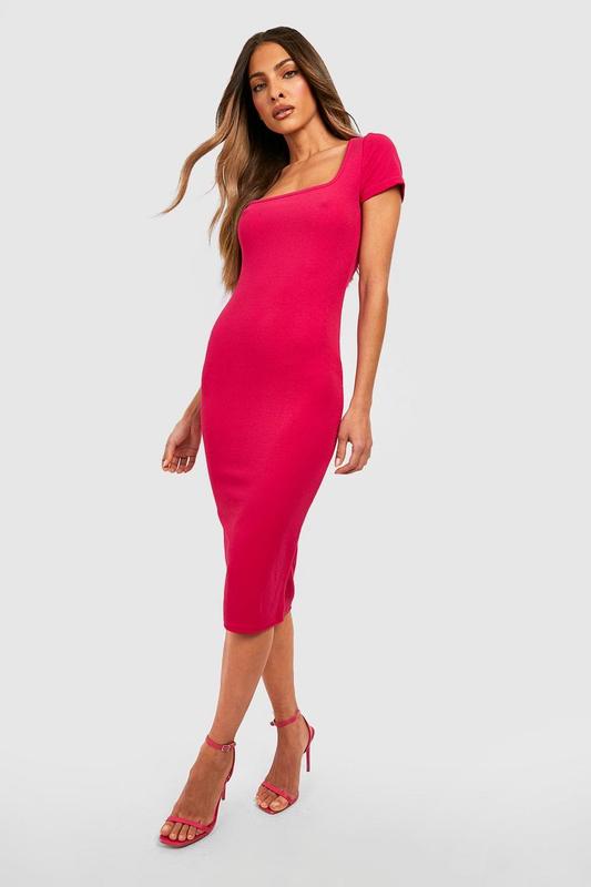 Сукня міді футляр яскрава малинова по фігурі плаття платя