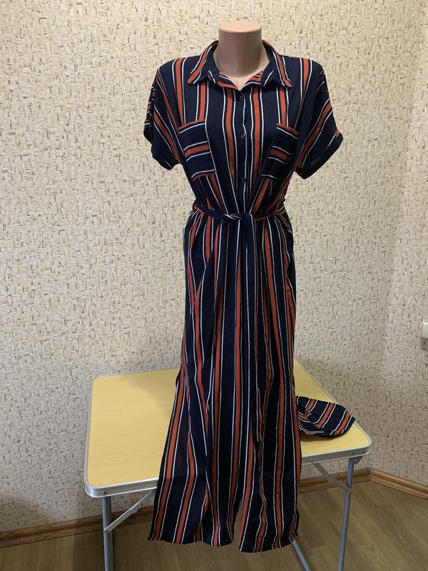 Платье- рубашка длинное, в полоску. Очень эффектно смотрится как самостоятельно, так и верхним слоем. Замеры на фото