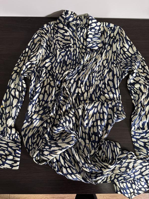 Стильна сукня сорочкового крою від Mango ✨ 🔹 Розмір: S 🔹 Матеріал: приємна до тіла тканина, легка та дихаюча 🔹 Колір: кремово-синій принт із чорними акцентами 🔹 Деталі: довгий рукав, комірець, ґудзики спереду, пояс, який підкреслює талію 🔹 Стан: відмінний стан, одягала на подію 1 раз Сукня ідеально підходить для повсякденного стилю, роботи чи вечірніх виходів. Виглядає дуже елегантно та дорого. Купувалася в офіційному магазині Mango в Італії.