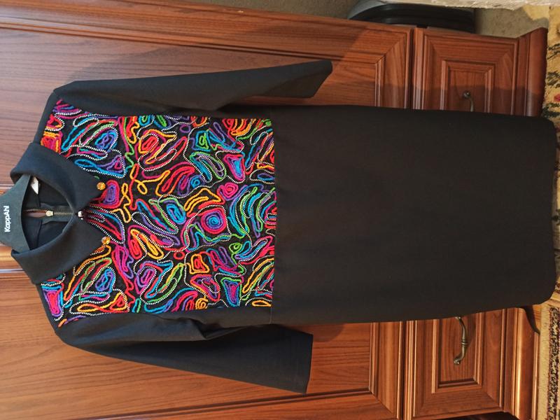 Платье в хорошем состоянии, без дефектов, с красивой вышивкой и гарнитурой, прямого кроя