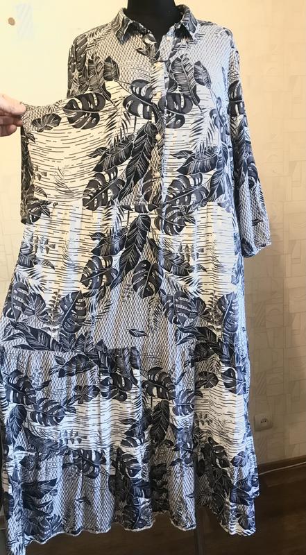 Перед замовленням обов’язково перечитайте умови, зробіть заміри, передивіться фото!!!! Сукня відомого бренду, 100% віскоза, рукав 3/4, акуратний комір, застібка на ґудзики до таліі, від таліі ярусна, стан і фасон максимально показано на фото, розмір указано 18, одягнуто на 20р, орієнтуйтеся по замірах. Заміри: довж -116, до таліі-43, до 2 лініі відрізу яруса-74, до 3-98, пог-56, пот-55, по стегон-68, довж рукава-46, по рукава по проймі-26, по низу-14, в районі біцепсу-20, ш плечей-45, не тягнеться, заміри зроблено в спокійному стані, якщо якийсь важливий переміряю, повернення не має, відповім на всі питання,відправлю зручною вам поштою після оплати на картку Приват чи Моно, читайте в розділі « про мене», безпечна оплата і накладний платіж з передплатою Нова пошта, Розетка, Містекспрес ! По повній оплаті Укрпошта( обговорюється індивідуально)