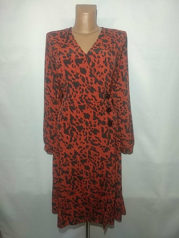 Платье миди на запах красного и черного цвета, принт лео, размер m.