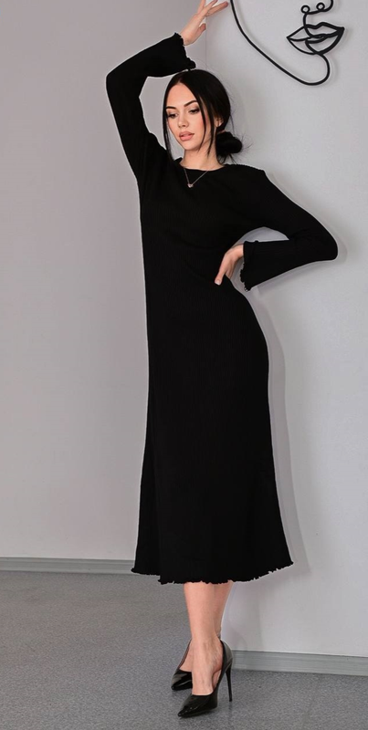 Черное платье в рубчик – классика, которая всегда в тренде! ✨ Платье, подчеркивающее фигуру и придающее уверенности! Идеальная посадка, эластичный материал и сдержанный дизайн – это платье станет вашей любимой базой для любого образа. ✔️ Особенности: Стильная длина миди - 131 см Облегающий крой в рубчик – визуально вытягивает силуэт Комфортный, мягкий трикотаж: вискоза + эластан + полиэстер Универсальный размер – отлично адаптируется под фигуру 📏 Замеры: Длина - 131 см ПО подмышками - 38 см Талия - 33 см Бедра - 42 см Длина рукава - 70 см НО низу – 76 см 🖤 Базовая вещь в гардеробе, которая всегда выручит – для работы, свидания или прогулки. Заказывай сейчас – выгляди непревзойденно каждый день!