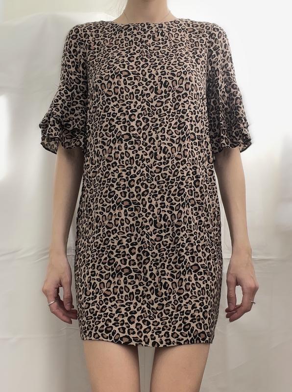 Платье (леопардовый принт) прямого свободного кроя, на короткий рукав - размер 42 (Обхват грудей 80-90 см; Обхват талии – 80-90 см; Обхват стегон – 95-100 см; Длина изделия по спинке - 73 см)
