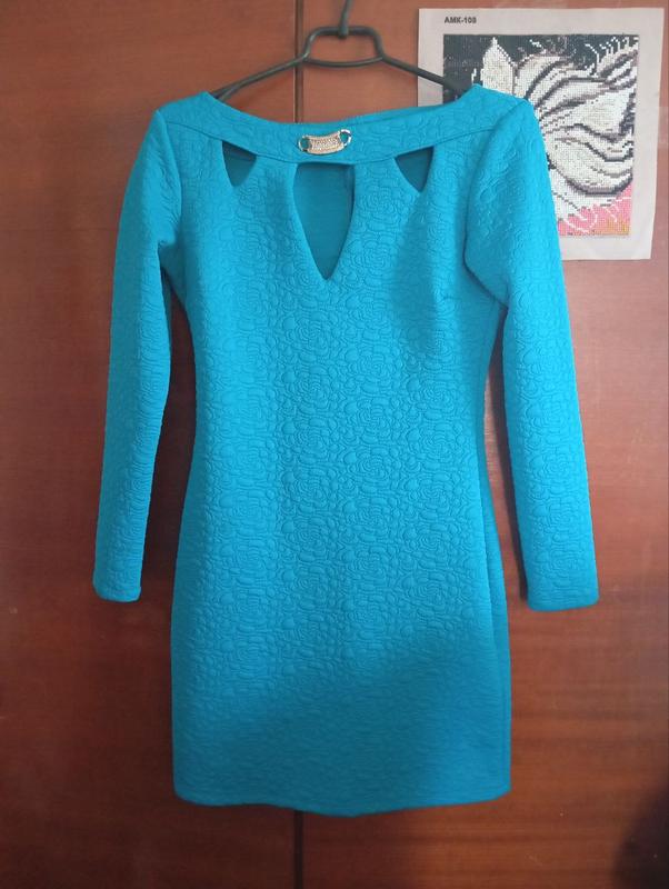 Бирюзовое платье с красивым декольте. Тепленькая. Подходит на осень. Размер 46 Замеры: длина 83см пог 38см пот 36см