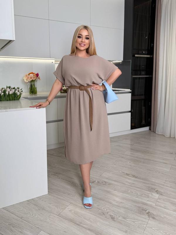 Стильна сукня 🔥 🎭 Модель 1022 🚩Ціна 730 грн 📥ПОЯС НЕ ВХОДИТЬ В КОМПЛЕКТ ✅ПОЯС МОЖНА ПРИДБАТИ ОКРЕМО -95 грн Розміри: 50-52, 54-56, 58-60, 62-64 Тканина: американський креп жатка Кольори: насичений зелений, чорний, шоколадний, бежевий Сукня з американського крепу - ідеальний вибір для стильних та впевнених у собі жінок. Його вільний крій зі спущеною лінією плеча створює елегантний та одночасно комфортний образ. Комфортна лінія талії на резинці. Легко поєднуються з аксесуарами. М'яка текстура тканини забезпечує приємні відчуття на шкірі, а легкий блиск додає вишуканості. Ідеально підходить як для повсякденних виходів, так і для особливих випадків, сукня стане незамінною частиною гардеробу. Доповніть образ стильним поясом та міні-сумкою для завершеності. Виміри сукня 1022 🌀50-52: довжина 118 см, рукав від горловини 29 см, ОГ 118 см, ОТ 102 ( резинка), ОС 120 см 🌀54-56: довжина 118 см, рукав від горловини 30 см, ОГ 122 см, ОТ 118 см ( резинка), ОС 126 см 🌀58-60: довжина 121 см, рукав від горловини 32 см, ОГ 128 см, ОТ 124 см( резинка), ОС 136 см 🌀62-64: довжина 121 см, рукав від горловини 34 см, ОГ 136 см, ОТ 132 см( резинка), ОС 142 см
