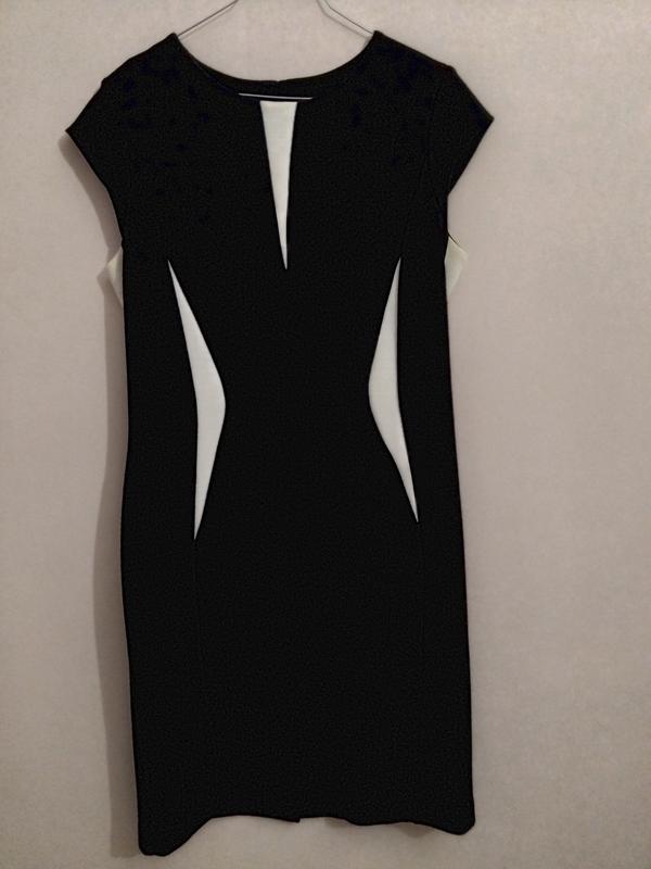 Очень элегантное платье из плотного трикотажа длина 104, плечи 40, ПОГ 52, ПОТ 47, ПОБ 53. Замеры произведены в свободном состоянии. Размер указанный 16, но как ко мне лучше будет 14