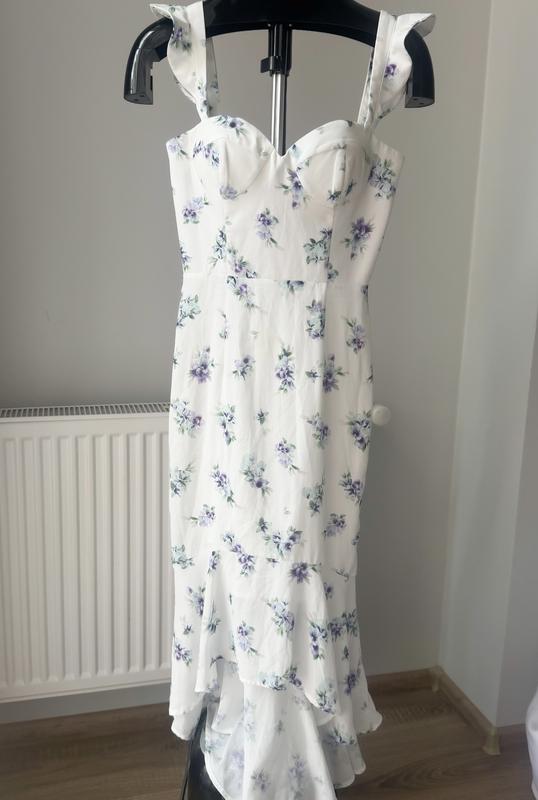 Платье в цветочный принт, размер s. Стан - идеальный Спереди короче, сзади дольше. Фасон рибка