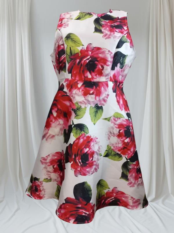 Элегантное женское платье без рукавов с приталенным лифом и расклешенной юбкой. Белая плотная ткань, есть два кармана. Украшена крупным цветочным принтом напоминает пионы или розы, придающие платья романтичный и праздничный вид. Такое платье идеально подойдет для событий, вечеринок или торжественных мероприятий. Замер по изделию: Пог 56 Пот 45 Поб 70 + Длина 99