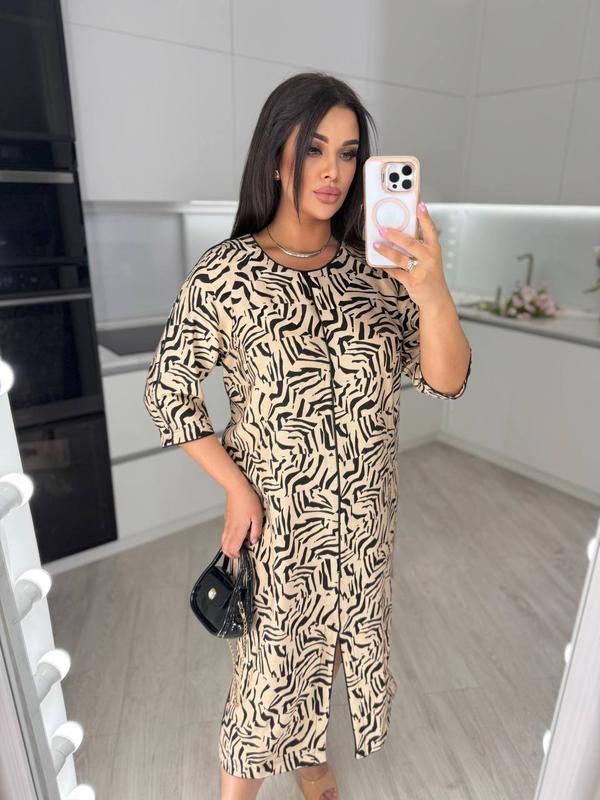 ЗНОВУ В НАЯВНОСТІ!! Получили новый принт кофейно-черного цвета😍 Платье Арт 2346 Тканина креп-льон Цвет черно-молочный, кофейно-черный Размер 48-50,52-54,56-58 Цена 735 грн Платье прямого кроя,с рукавом 3/4. Украшено кантом, спереди разрез. Ткань дышит, приятная к телу.