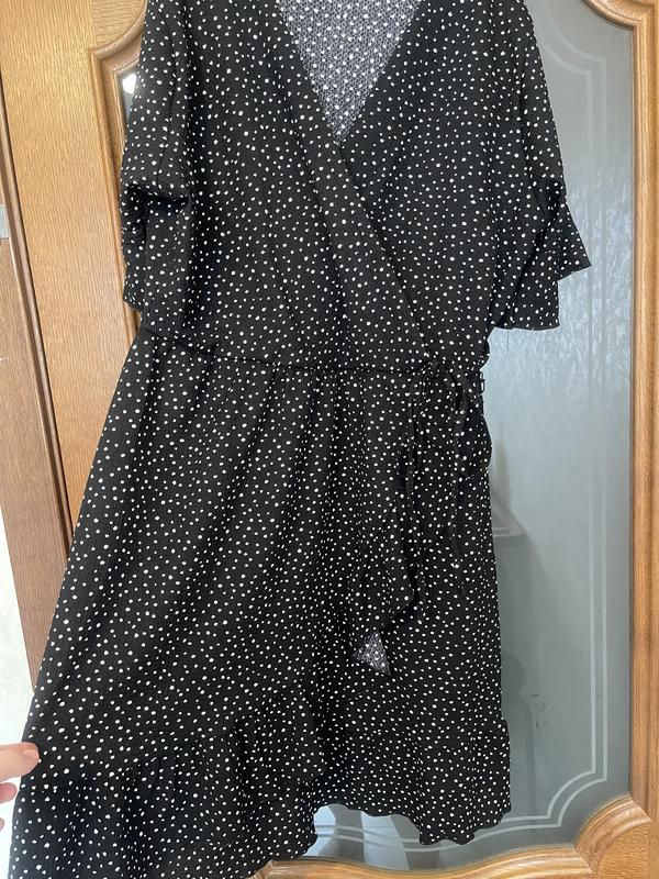 На запах (прошита), рукав 26см, хл, ПОГрудей 52см, поталія 53см( на резинці), довжина 96см, чорна в горошки, нова без бірки,