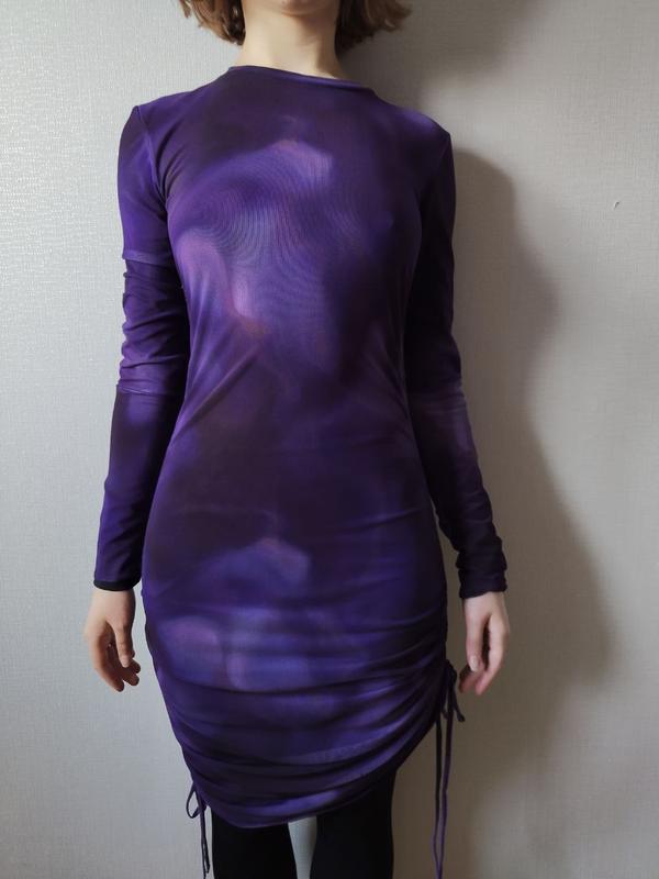 Платье фиолетовое tally weijl. Размер S. Сверху идет сеточка, по бокам длина юбки регулируется завязками. Замеры модели: Под грудью - 69 см Грудь (по самым выступая точкам) - 80 см Талия - 61 см Седницы (по самым выступающие точкам) - 93 см Носит размер Xs-S