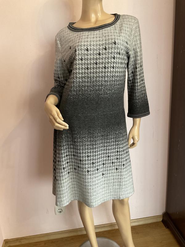 Красивое качественное платье, трикотаж не тонкий. Без подкладки. Без дефектов. Замеры в груди 54-56 см в талии 48-50 см в бедрах 65-66 см длина 94 см до талии 47 см рукав 47 см по окружности руки 21-22 см в плечах 43-44 см 6:4:25