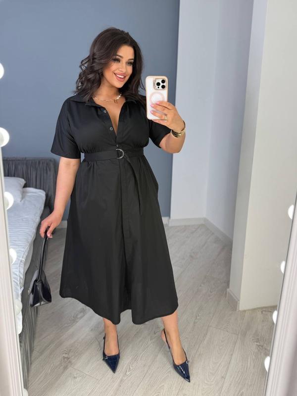 НОВИНКА ‼️ Платье Арт 2560 хрз Тканина котон стрейч Цвет черный, голубой, шоколадный, мятный Размер 48-50,52-54,56-58 Платье из легкого коттона, на пуговицах, рубашечный воротник. Короткий цельнокроеный рукав, талия на резинке, с карманами.