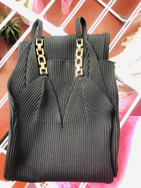 Классное платье в рубчик очень красиво смотрится на груди одето один раз. Подойдет от xs к м хорошо тянется