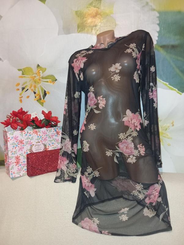 Платье сетка в цветочный принт от бренда New Look , размер указан 16(44), подойдёт на M/L Цвет черный Бирка с составом указана на фото Ткань отлично тянется Дефектов нет Замеры предоставлю по требованию Подписывайтесь на мои обновления 🌹💐🌺