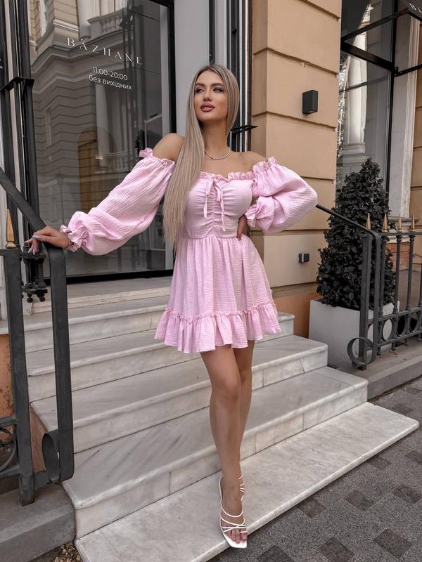 Весняна сукня🌷 очень нежная и романтичная, на комлекте рюш, декоративная завязка; с длинным рукавовым фонарик на резинке, талия на резинке, спинка прострочена; юбка широкая, по низу присборенная оборка🌸🌷 Арт. 10470 Ткань: качественный натуральный принтованный «Муслин», состав 100% хлопок. ткань: Турция, очень приятная на ощупь хорошее качество ткани и пошива🌸 Цвета: белый (розовая веточка),белый ( малиновый бутончик), белый (розовый тюльпанчик) Размер: с-м(42-44) Об.. гр. до 92 см. Об.талии до 70 см. Длина 83 см. Размер: м-л(46-48) Об. гр. до 98 см. Об.талию до 78 см. Длина 86 см.