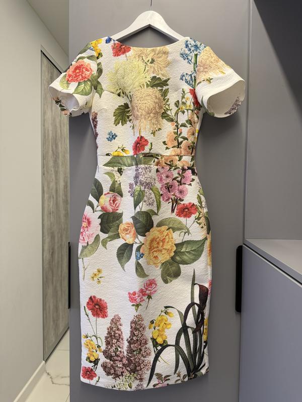 Летнее платье в хорошем состоянии, 42 размер. На платье есть вытяжки (показано на фото), но в общем не слишком бросается в глаза. По шву маленькая дырочка