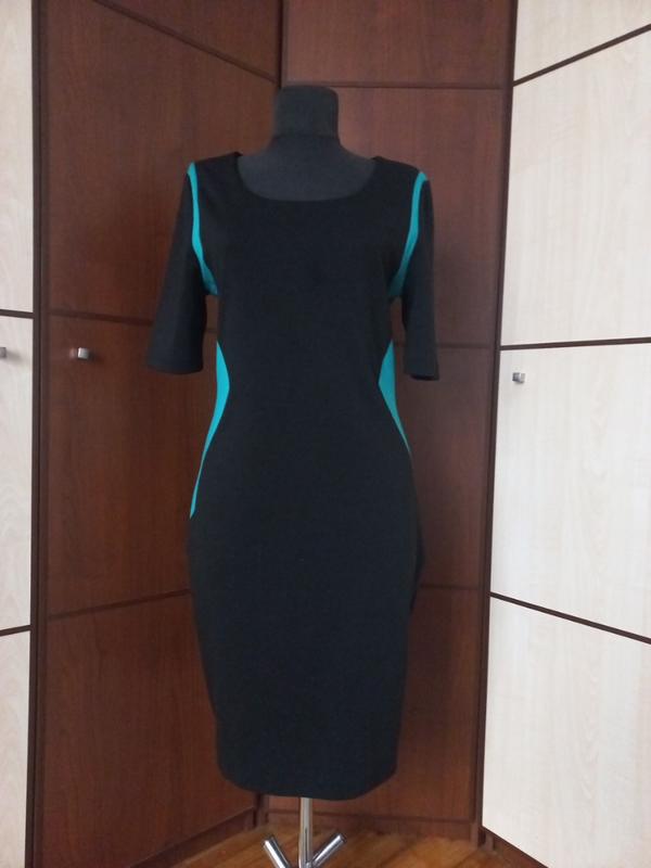 трикотажное платье в деловом стиле. Длина 102 см, длина рукава 30 см, ширина плеч 40 см, ПОГ 46 см, ПОТ 41 см, ПОБ 50 см
