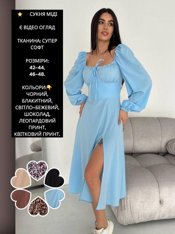 🤍 Сукня 🤍 Модель 9919 ▪️На спинке - шнуровка, благодаря чему можно регулировать по комфортности Рукава внизу на резинке ▪️Тканина - супер софт ▪️ Цвета - черный, голубой, светло-бежевый, шоколад, леопардовый принт, цветочный принт ▪️Размер 1 (42-44): ▪️ОГ - 84-90 см ▪️ОС - 88- 98 см ▪️Длина - 115 см ▪️Длина рукава от резинки на плече - 65-67 см Размер 2 (46-48): ▪️ОГ - 90-96 см ▪️ОС - 94-104 см ▪️Длина - 115 см ▪️ Длина рукава от резинки на плече - 65-67 см Есть видео обзор