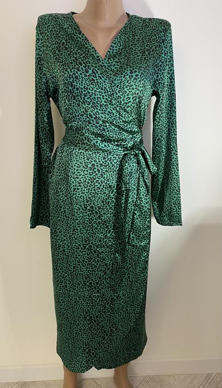 Плаття на запах ,шовк,красивого смарагдового кольору в леопардовий принт,на тілі виглядає дуже елегантно та дорого ,завдяки пошиву розмір можна регулювати Ог -54 Др 72 Довж 118