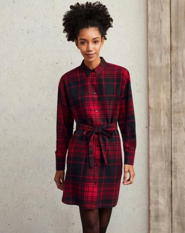Платье из мягкой, теплой фланели, комфорт при носке благодаря использованию чистого хлопка, с воротником и рядом пуговиц по всей длине, с боковыми разрезами и слегка закругленной спинкой, с манжетами на рукавах, с лентой на талии для завязки, свободный крой. платье рубашка 40/42 европ С-М, наше 48 esmara, спущенное плечо, свободный крой ориентируйтесь на замеры длина 93, ширина 58, рукав по горловине 72см