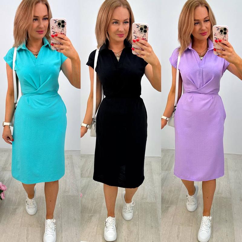 Сукня 🔥 Модель 60/kabl/ Размеры: 42-44,46-48,50-52|⠀ Тканина: креп - жатка Цвет: черный, графит, пудра, лимон, лаванда, мокко, шоколад, тиффани, трава, масло С притачным поясом спереди, которым можно регулировать талию 🙌 🔥Цена 620 грн