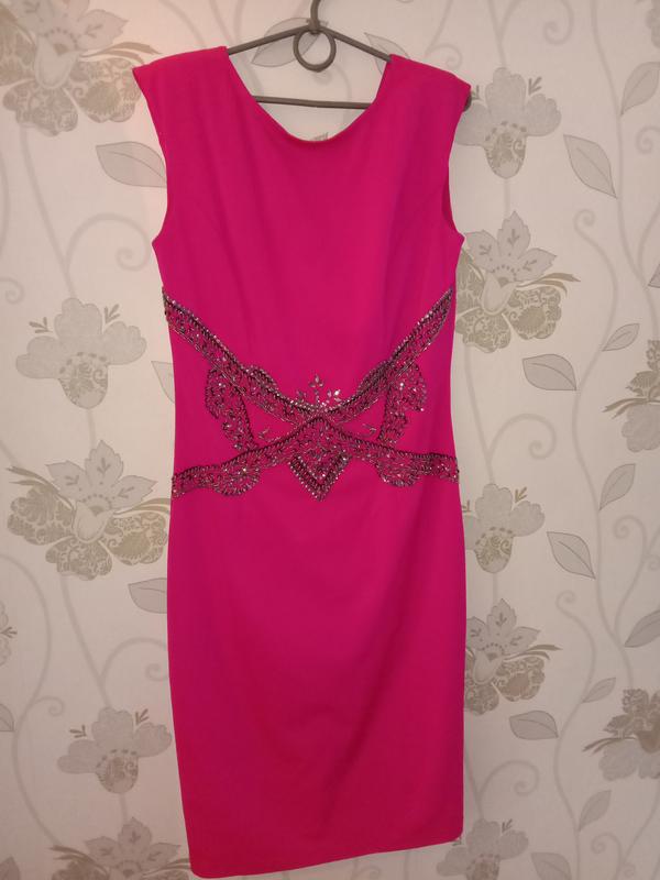 Красивое платье с вышивкой бисером розового цвета приталенное миди нарядное