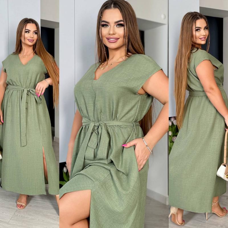Код.072sof ( Платье из воздушного льна - жатки) Сезон: весна-лето 2025 г. Размеры: 48-50, 52-54, 56-60 Параметры платья (по готовому изделию): ОГ платья/ ОТ/ОС: 48-50: 112-116/78-88/136 52-54: 120-124/84-94/148 56-60: 128-132/90-100/154 Длина платья / длина рукава от горловины: 48-50: 130/18 52-54: 131/19 56-60: 132/20 Ткань: летний вискозный лен-жатка идеально для жаркого лета. Восемь цветов: - красный - серый - черный - темный шоколад - джинс - фисташка - молоко - бежевый Платье с разрезом, карманами в боковых швах на резинке по талии под поясок P.S. На моделях размер платья: 52-54