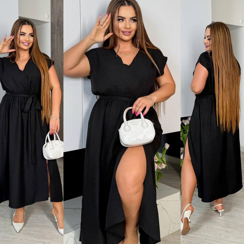 Код.072sof ( Платье из воздушного льна - жатки) Сезон: весна-лето 2025 г. Размеры: 48-50, 52-54, 56-60 Параметры платья (по готовому изделию): ОГ платья/ ОТ/ОС: 48-50: 112-116/78-88/136 52-54: 120-124/84-94/148 56-60: 128-132/90-100/154 Длина платья / длина рукава от горловины: 48-50: 130/18 52-54: 131/19 56-60: 132/20 Ткань: летний вискозный лен-жатка идеально для жаркого лета. Восемь цветов: - красный - серый - черный - темный шоколад - джинс - фисташка - молоко - бежевый Платье с разрезом, карманами в боковых швах на резинке по талии под поясок P.S. На моделях размер платья: 52-54